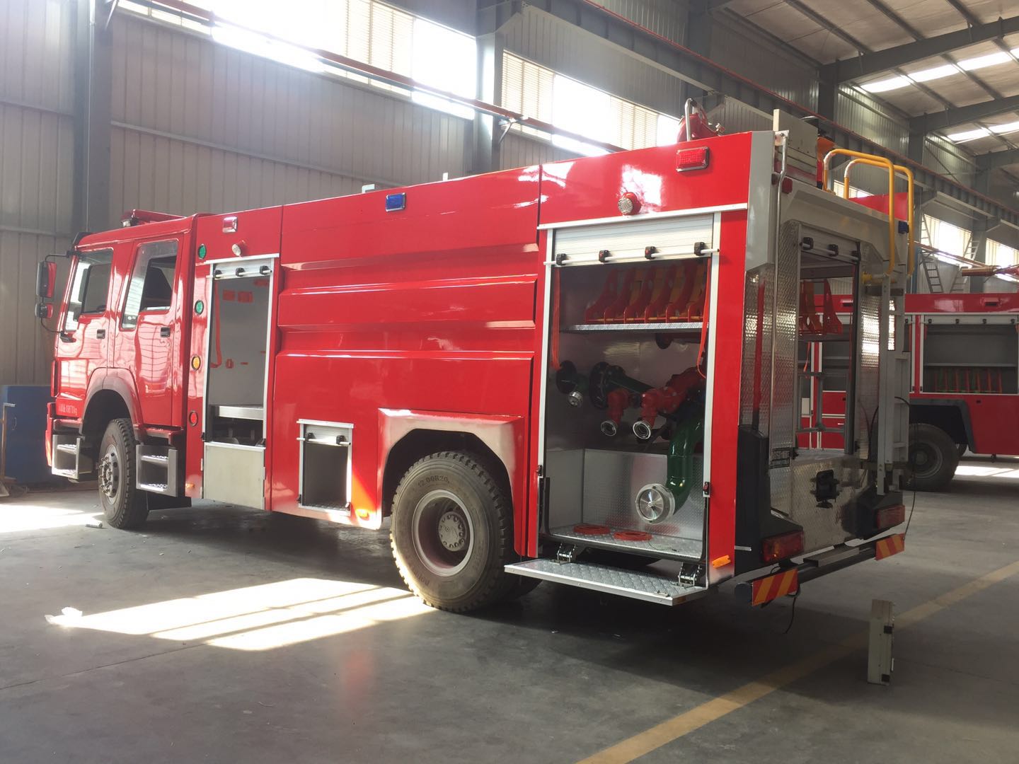 泵房和器材箱一樣,多為全剛式框架焊接結構,除了置放消防泵以外,一般也有放置于泵相關的器材空間,以便消防隊員操作。